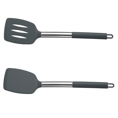อาหารที่จําเป็น สปาตูลาที่ไม่ติดและช้อนรั่วที่ติดกับไม้เหล็กไร้ขัด